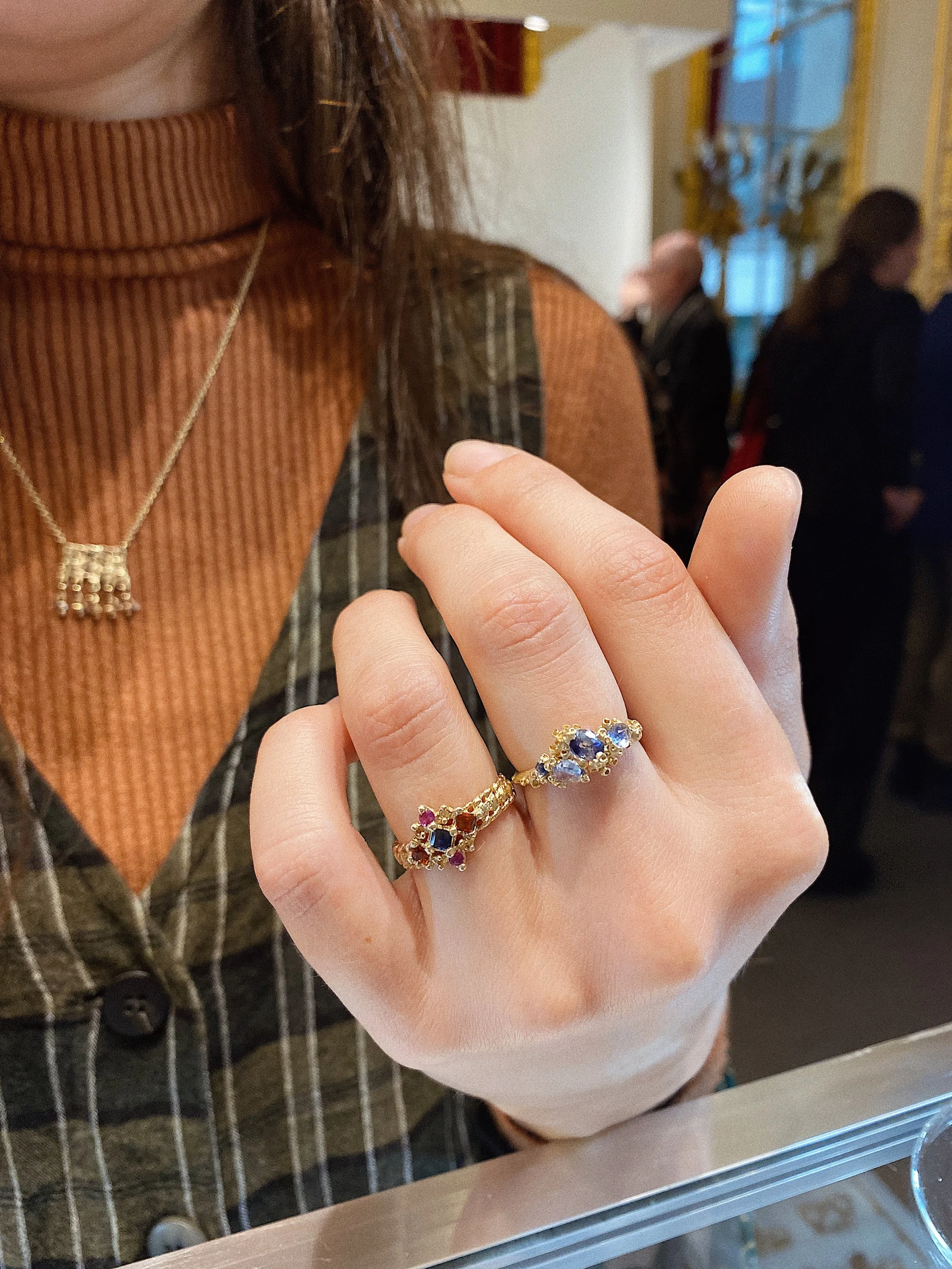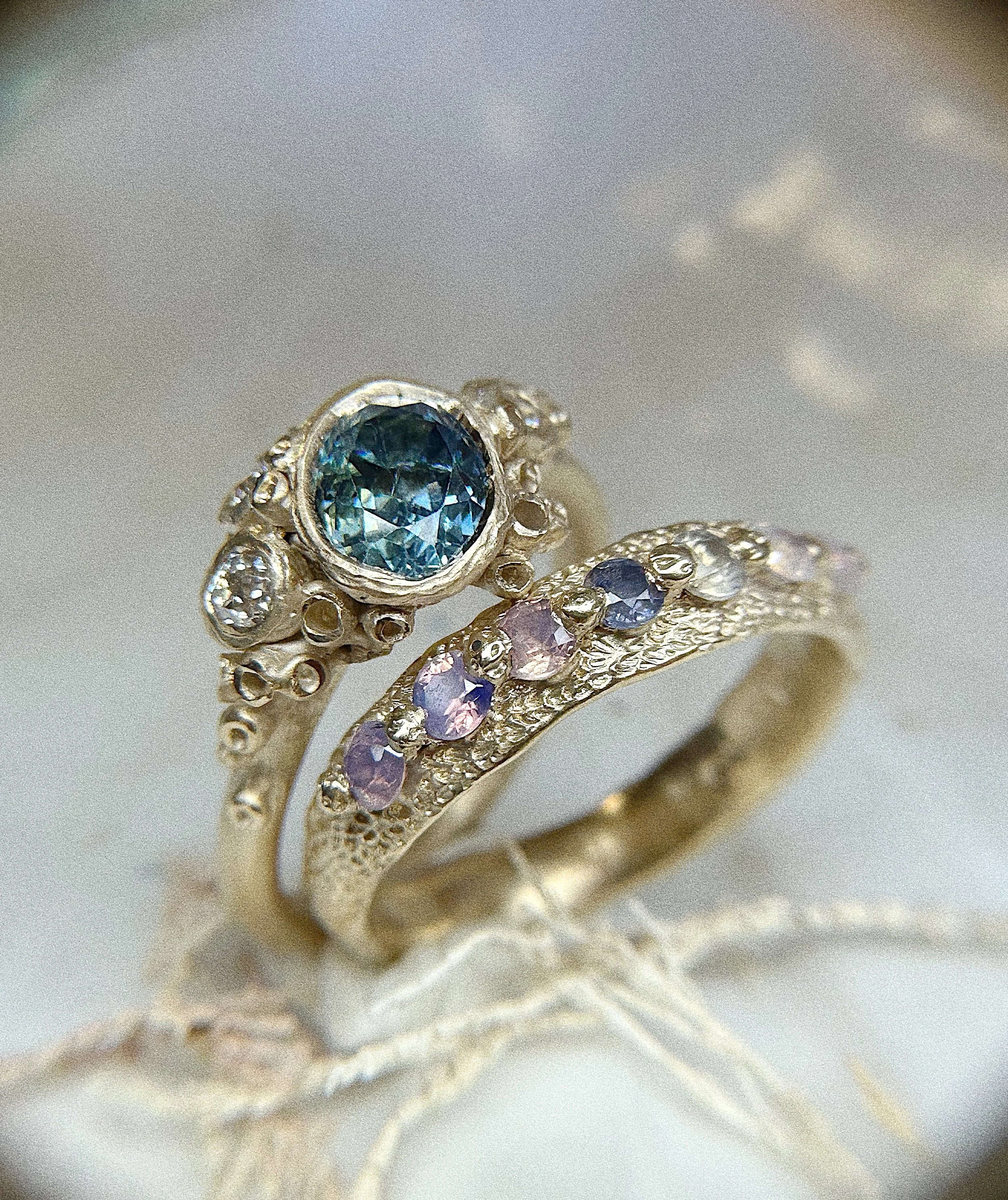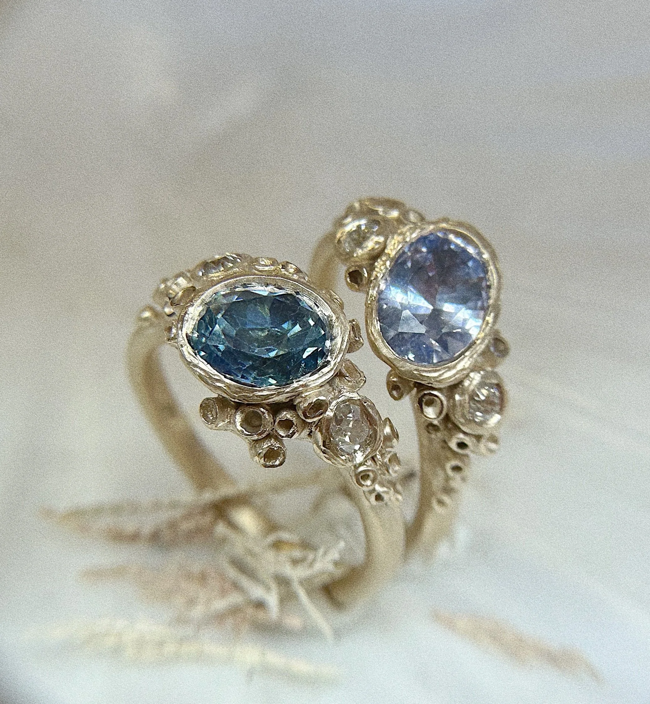 to ask her to create the perfect oceanic ring for our Treasury. Encapsulating the beautiful gems that I selected in Fairtrade gold transports me to hazy days of rock-pooling and treasure seeking. A true One of a Kind. ” Sarah Burns, Director, Gill Wing Jewellery.