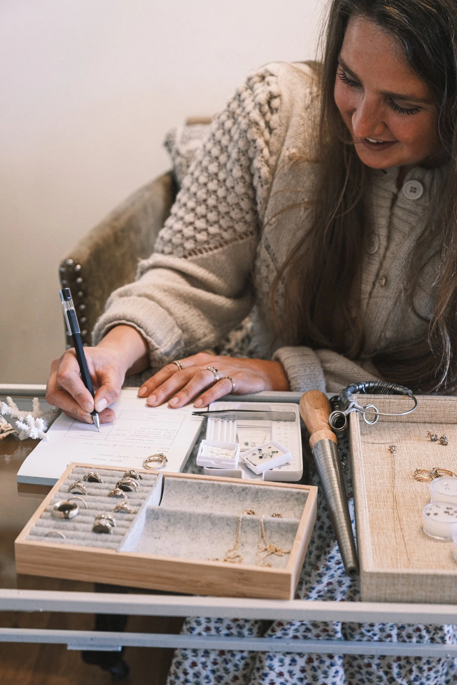 Bespoke & Custom Designs. Collaborate directly with Ami to create a piece of jewellery that holds personal significance. Ami will guide you through the design process, whether you arrive with a clear idea or prefer exploring possibilities together. Feel free to bring sentimental jewellery or heirloom stones to be reimagined into your new bespoke piece.
